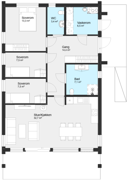 Antall soverom: 3