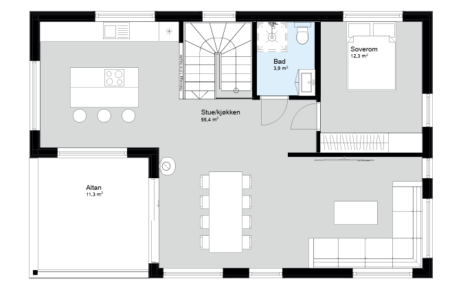 Utleiedelen er smart integrert og kan enten gi ekstra inntekt, eller enkelt bygges inn som en del av hovedboligen dersom behovene endrer seg.